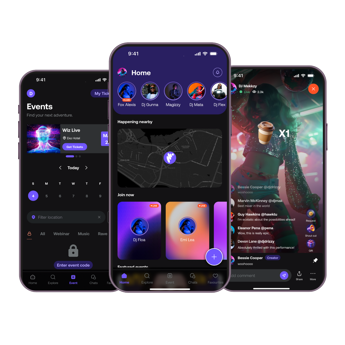 Your hub for all event types, secure ticketing, meeting new people and chatting, real-time song requests and shoutouts. Use our unique feature to send song requests or shoutouts, explore people nearby and start conversations.